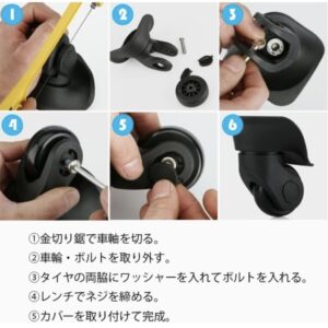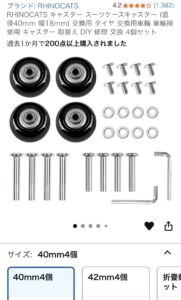 何でも売られているAmazonならきっと見つかるだろうと検索してみたら、スーツケース修理用の車輪が売られていました。