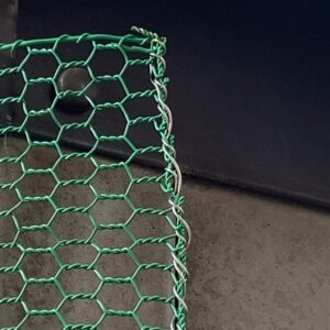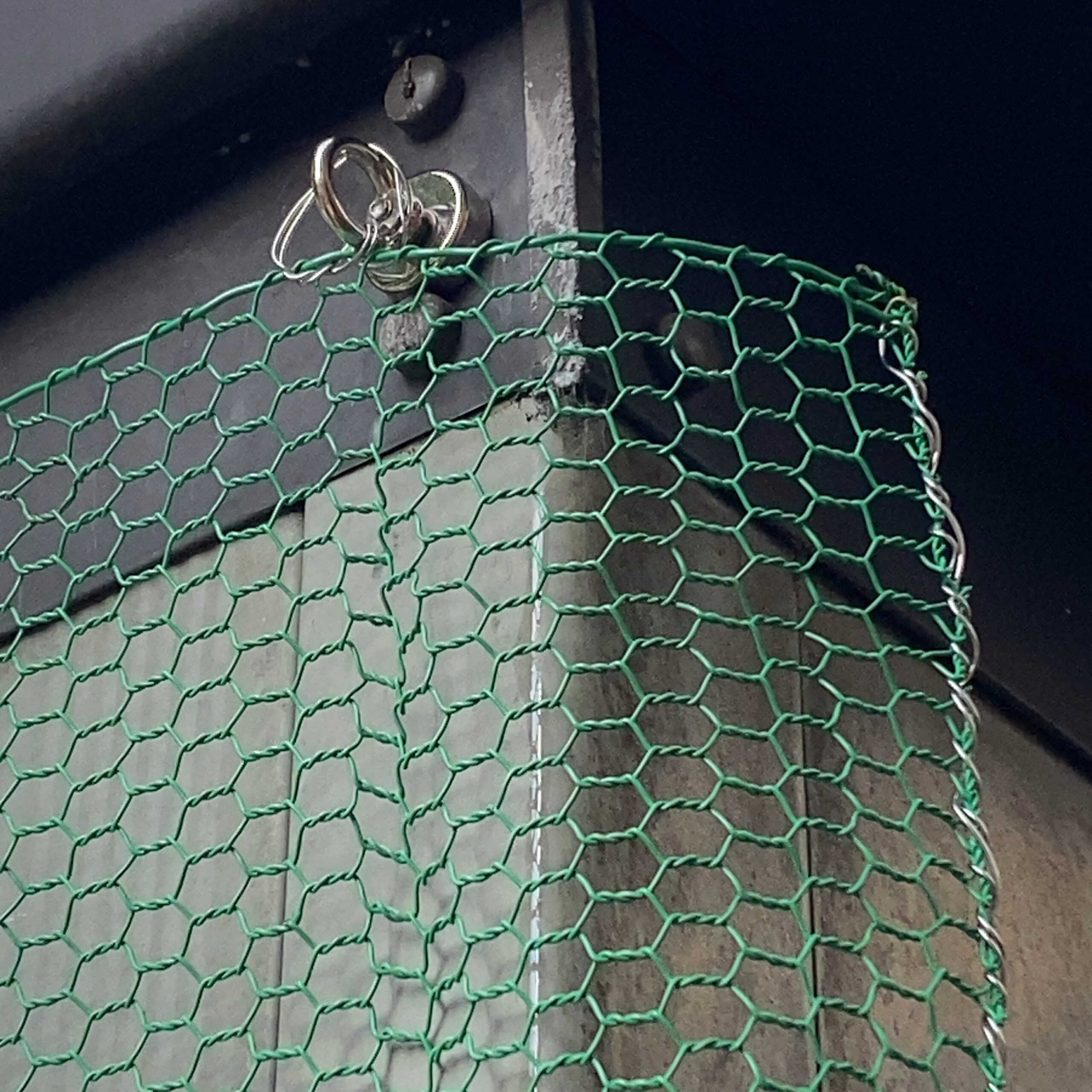 写真を拡大すると網目の中間を横に這わせてるステンレス針金