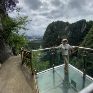 先ほどのお写真にもあった通り、絶壁にへばりつくように全長808メートルの「空中桟道(遊歩道)」が整備されています。その中には、空中にせり出した100メートルに及ぶ**「透明なガラス桟道・展望台」**が含まれており、まるで空を飛んでいるかのような(あるいは足がすくんで動けなくなるような)強烈なスリルを味わうことができます。