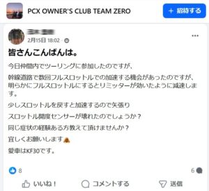 facebookグループ『PCX OWNER’S CLUB TEAM ZERO』での投稿で、フルスロットル時に減速するという相談を見かけ、僕のPCX150でも、よーく考えてみたら、同じでね~ぇ?