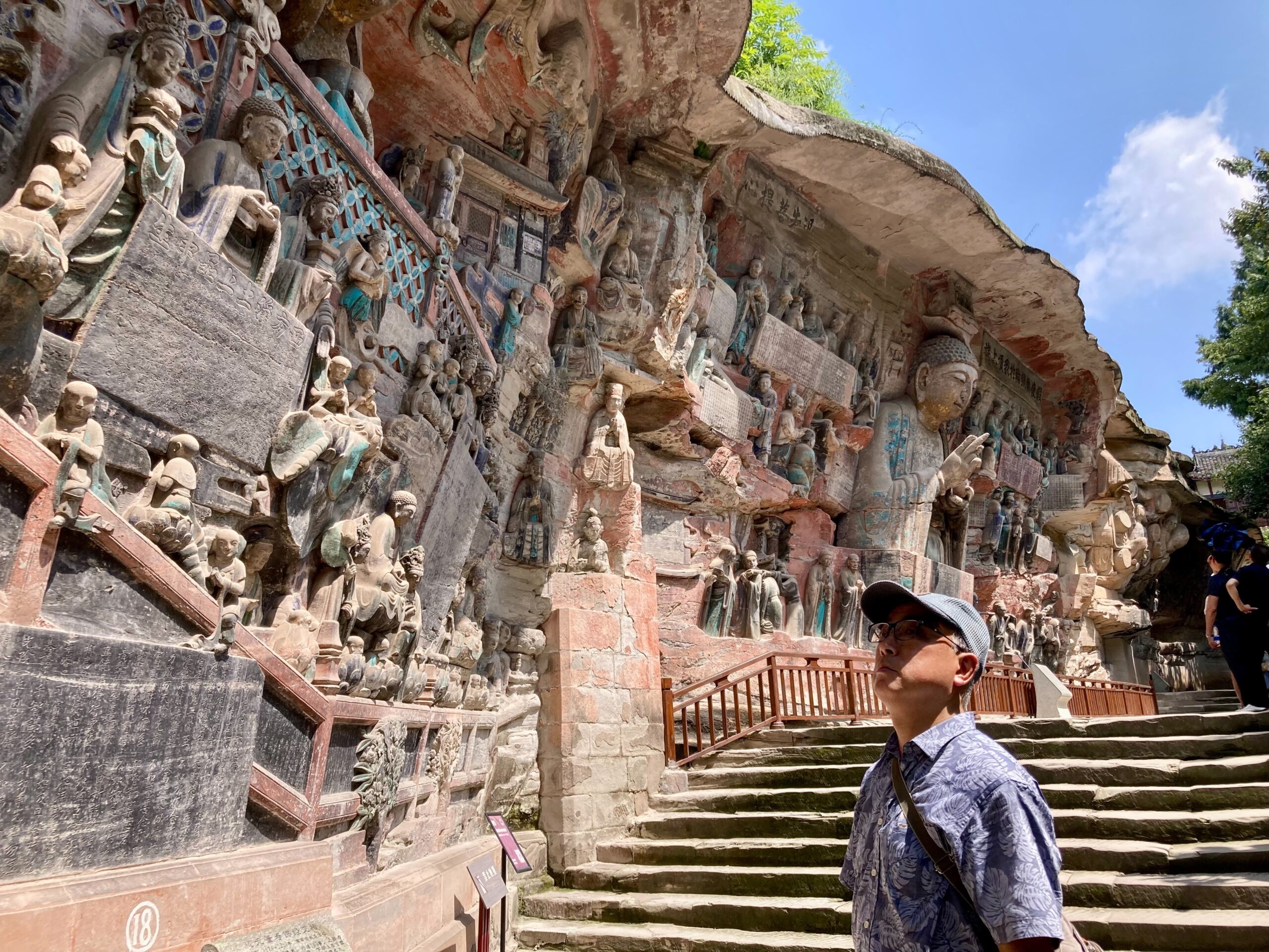ここは、重慶市中心部から少し離れた大足区にある世界遺産、「大足石刻(だいそくせっこく)」、その中でも最大のハイライトである**「宝頂山(ほうちょうさん)」**エリアですね!